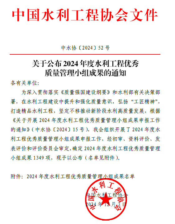 近年來,工程局公司深入貫徹落實《質量強國建設綱要》和水利部有關部署要求,在工程建設中強化質量意識,圍繞施工中重難點問題開展QC小組質量提升攻關活動,著力提升公司整體質量管理水平,推動企業高質量發展。