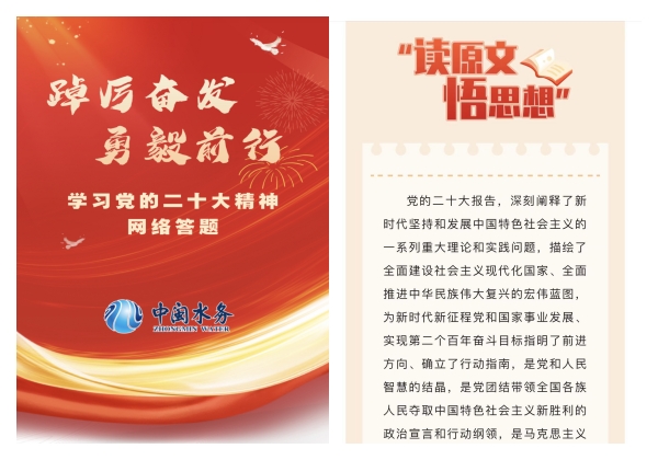 下一步,公司黨委將根據集團黨委的部署安排,持續深入學習宣傳貫徹黨的二十大精神,積極營造大學習大宣講氛圍,切實把全體干部職工的思想和行動統一到黨的二十大精神上來,深入推進黨的二十大精神在公司落地生根、開花結果,在推動集團公司高質量發展,在全面建成社會主義現代化強國、實現第二個百年奮斗目標,以中國式現代化全面推進中華民族偉大復興的偉大征程中貢獻水務力量!