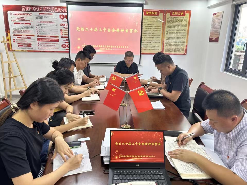 為全面深入學習貫徹黨的二十屆三中全會精神,引導公司廣大黨員干部把思想和行動統一到黨的二十屆三中全會精神上來,水投水務公司黨總支委員為公司黨員、項目部職工宣講黨的二十屆三中全會精神。黨總支委員緊緊圍繞深刻認識黨的二十屆三中全會的重要意義、深入學習領會習近平總書記在全會上的重要講話精神、全面準確理解和把握進一步全面深化改革的重大舉措、全力以赴抓好全會精神貫徹落實等方面,作了全面系統的闡釋和宣講,并強調公司全體職工要牢牢把握黨的二十屆三中全會精神的核心要義,立足自身崗位,把全會精神的學習成果轉化為推動工作的強大動力。截至目前,公司黨總支累計開展宣講3場,參會34人次。